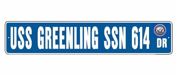 USS GREENLING SSN 614 Aluminum Street Sign Blue / White 6" x 30" Military USN SS001