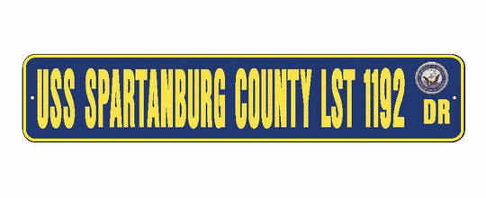 USS SPARTANBURG COUNTY LST 1192 Aluminum Street Sign Navy Blue / Yellow 6" x 30" Military USN SS002