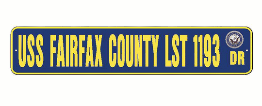 USS FARFAX COUNTY LST 1193 Aluminum Street Sign Navy Blue / Yellow 6" x 30" Military USN SS002