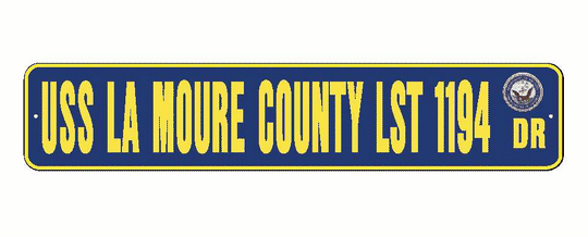 USS LA MOURE COUNTY LST 1194 Aluminum Street Sign Navy Blue / Yellow 6" x 30" Military USN SS002