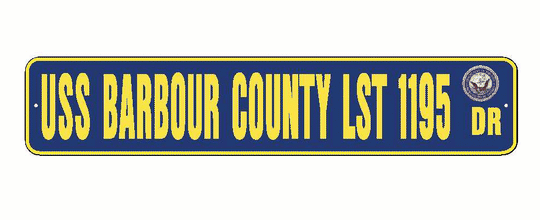 USS BARBOUR COUNTY LST 1195 Aluminum Street Sign Navy Blue / Yellow 6" x 30" Military USN SS002