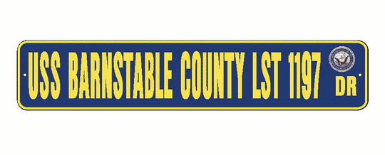 USS BARNSTABLE COUNTY LST 1197 Aluminum Street Sign Navy Blue / Yellow 6" x 30" Military USN SS002