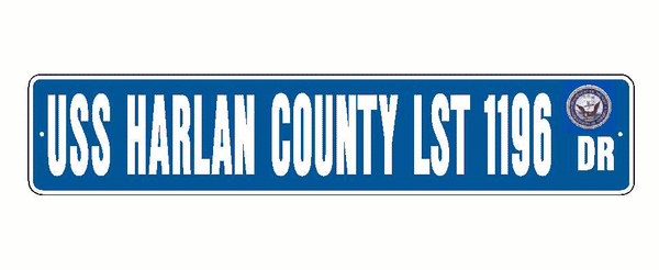 USS HARLAN COUNTY LST 1196 Aluminum Street Sign Blue / White 6" x 30" Military USN SS001