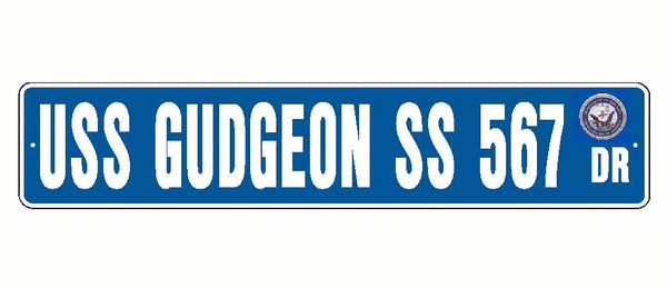 USS GUDGEON SS 567 Aluminum Street Sign Blue / White 6" x 30" Military USN SS001