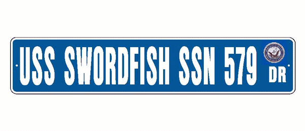 USS SWORDFISH SSN 579 Aluminum Street Sign Blue / White 6" x 30" Military USN SS001