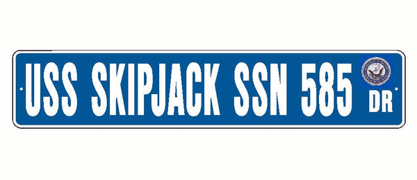 USS SKIPJACK SSN 585 Aluminum Street Sign Blue / White 6" x 30" Military USN SS001