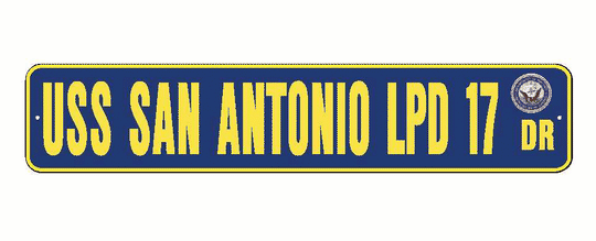 USS SAN ANTONIO LPD 17 Aluminum Street Sign Navy Blue / Yellow 6" x 30" Military USN SS002