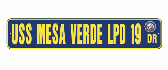 USS MESA VERDE LPD 19 Aluminum Street Sign Navy Blue / Yellow 6" x 30" Military USN SS002