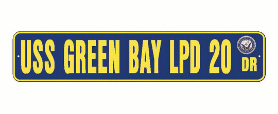 USS GREEN BAY LPD 20 Aluminum Street Sign Navy Blue / Yellow 6" x 30" Military USN SS002
