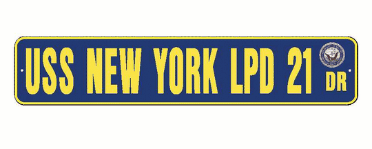 USS NEW YORK LPD 21 Aluminum Street Sign Navy Blue / Yellow 6" x 30" Military USN SS002