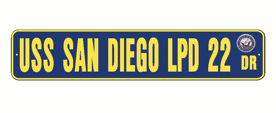 USS SAN DIEGO LPD 22 Aluminum Street Sign Navy Blue / Yellow 6" x 30" Military USN SS002