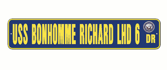 USS BONHOMME RICHARD LHD 6 Aluminum Street Sign Navy Blue / Yellow 6" x 30" Military USN SS002