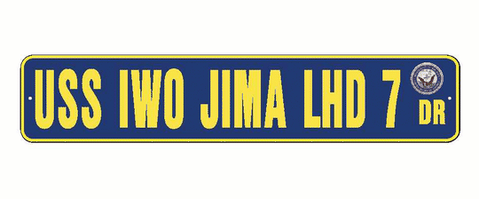 USS IWO JIMA LHD 7 Aluminum Street Sign Navy Blue / Yellow 6" x 30" Military USN SS002