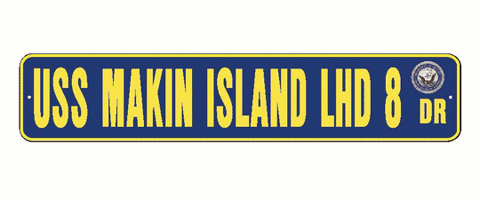 USS MAKIN ISLAND LHD 8 Aluminum Street Sign Navy Blue / Yellow 6" x 30" Military USN SS002