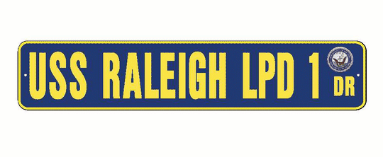 USS RALEIGH LPD 1 Aluminum Street Sign Navy Blue / Yellow 6" x 30" Military USN SS002