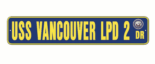 USS VANCOUVER LPD 2 Aluminum Street Sign Navy Blue / Yellow 6" x 30" Military USN SS002