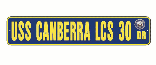 USS CANBERRA LCS 30 Aluminum Street Sign Navy Blue / Yellow 6" x 30" Military USN SS002