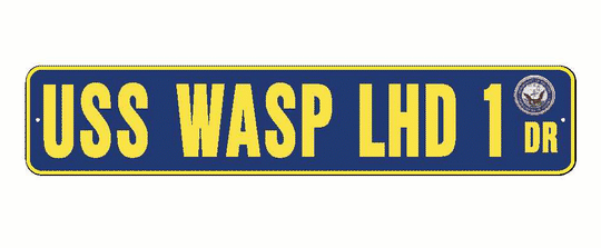USS WASP LHD 1 Aluminum Street Sign Navy Blue / Yellow 6" x 30" Military USN SS002