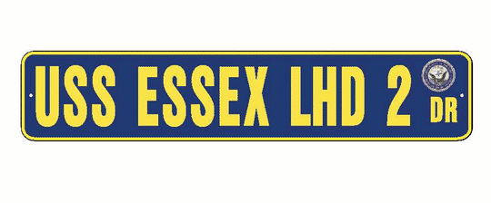 USS ESSEX LHD 2 Aluminum Street Sign Navy Blue / Yellow 6" x 30" Military USN SS002