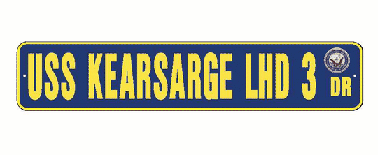 USS KEARSARGE LHD 3 Aluminum Street Sign Navy Blue / Yellow 6" x 30" Military USN SS002