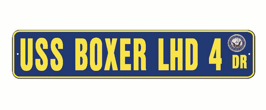 USS BOXER LHD 4 Aluminum Street Sign Navy Blue / Yellow 6" x 30" Military USN SS002