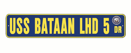 USS BATAAN LHD 5 Aluminum Street Sign Navy Blue / Yellow 6" x 30" Military USN SS002