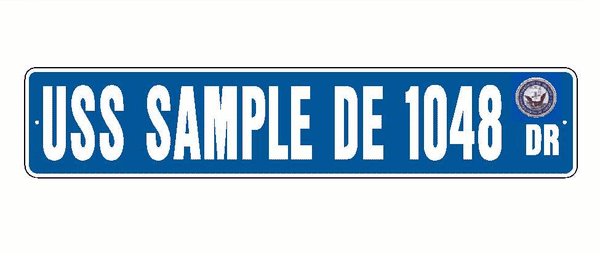 USS SAMPLE DE 1048 Aluminum Street Sign Blue / White 6" x 30" Military USN SS001