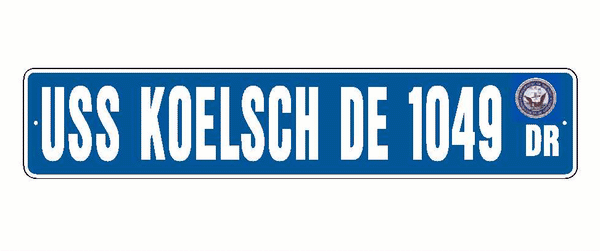 USS KOELSCH DE 1049 Aluminum Street Sign Blue / White 6" x 30" Military USN SS001