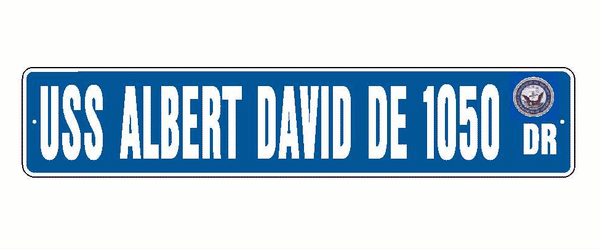 USS ALBERT DAVID DE 1050 Aluminum Street Sign Blue / White 6" x 30" Military USN SS001