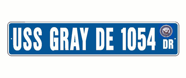 USS GRAY DE 1054 Aluminum Street Sign Blue / White 6" x 30" Military USN SS001