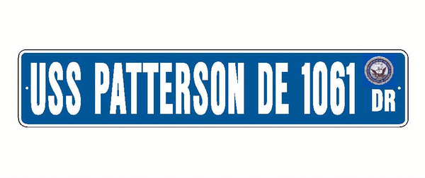 USS PATTERSON DE 1061 Aluminum Street Sign Blue / White 6" x 30" Military USN SS001
