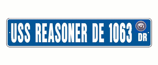 USS REASONER DE 1063 Aluminum Street Sign Blue / White 6" x 30" Military USN SS001