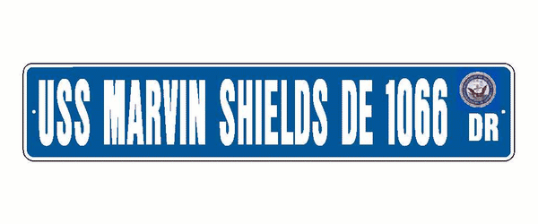 USS MARVIN SHIELDS DE 1066 Aluminum Street Sign Blue / White 6" x 30" Military USN SS001