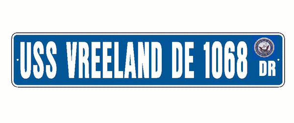 USS VREELAND DE 1068 Aluminum Street Sign Blue / White 6" x 30" Military USN SS001