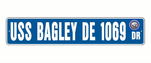 USS BAGLEY DE 1069 Aluminum Street Sign Blue / White 6" x 30" Military USN SS001