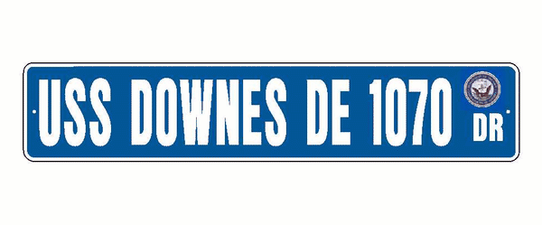 USS DOWNES DE 1070 Aluminum Street Sign Blue / White 6" x 30" Military USN SS001