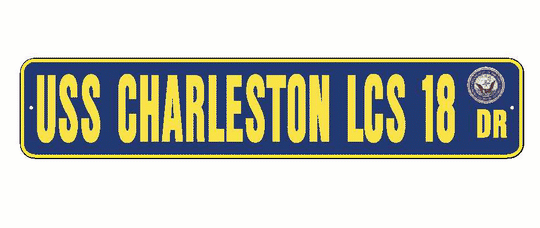USS CHARLESTON LCS 18 Aluminum Street Sign Navy Blue / Yellow 6" x 30" Military USN SS002