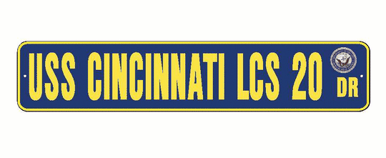 USS CINCINNATI LCS 20 Aluminum Street Sign Navy Blue / Yellow 6" x 30" Military USN SS002