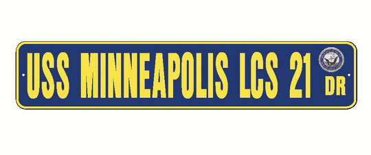 USS MINNEAPOLIS LCS 21 Aluminum Street Sign Navy Blue / Yellow 6" x 30" Military USN SS002