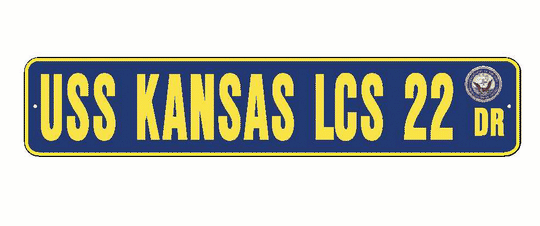USS KANSAS CITY LCS 22 Aluminum Street Sign Navy Blue / Yellow 6" x 30" Military USN SS002