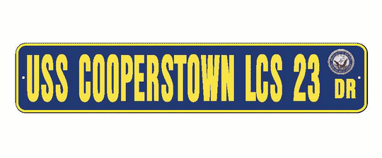 USS COOPERSTOWN LCS 23 Aluminum Street Sign Navy Blue / Yellow 6" x 30" Military USN SS002
