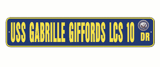 USS GABRIELLE GIFFORDS LCS 10 Aluminum Street Sign Navy Blue / Yellow 6" x 30" Military USN SS002