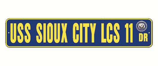 USS SIOUX CITY LCS 11 Aluminum Street Sign Navy Blue / Yellow 6" x 30" Military USN SS002