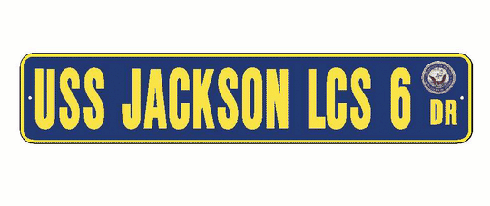 USS JACKSON LCS 6 Aluminum Street Sign Navy Blue / Yellow 6" x 30" Military USN SS002