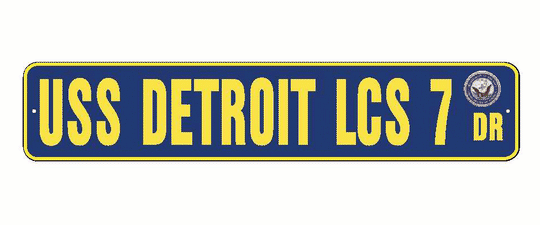 USS DETROIT LCS 7 Aluminum Street Sign Navy Blue / Yellow 6" x 30" Military USN SS002