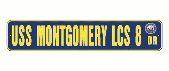 USS MONTGOMERY LCS 8 Aluminum Street Sign Navy Blue / Yellow 6" x 30" Military USN SS002