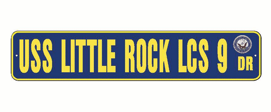 USS LITTLE ROCK LCS 9 Aluminum Street Sign Navy Blue / Yellow 6" x 30" Military USN SS002