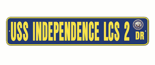 USS INDEPENDENCE LCS 2 Aluminum Street Sign Navy Blue / Yellow 6" x 30" Military USN SS002