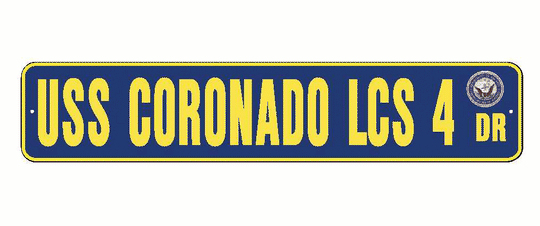 USS CORONADO LCS 4 Aluminum Street Sign Navy Blue / Yellow 6" x 30" Military USN SS002
