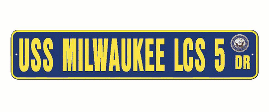 USS MILWAUKEE LCS 5 Aluminum Street Sign Navy Blue / Yellow 6" x 30" Military USN SS002